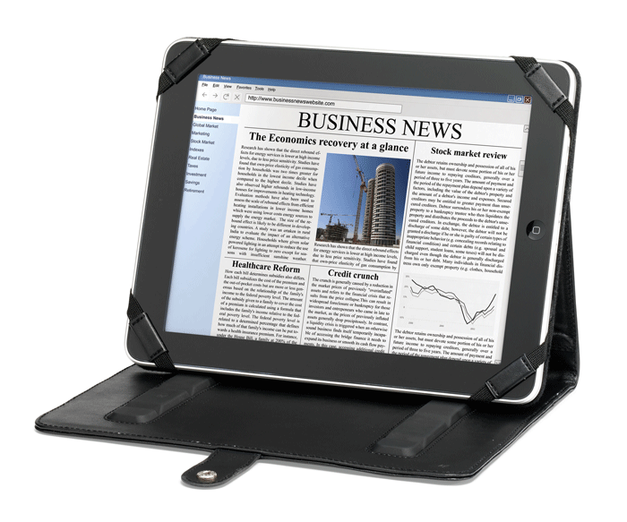 Also, available in black simulated leather. Versatile cover protects your tablet and converts to a presentation stand with three different viewing positions. 7 3/4" x 9 3/4" x 3/4".
