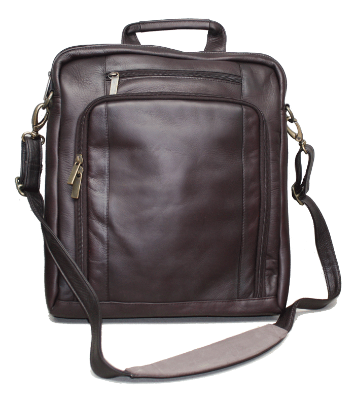 Large exterior pocket in the back to organize files. Zippered compartment in the front for organizing all your business needs. The roomy padded center compartment holds a laptop 14 1/2" x 12 1/2" x 3". Durable handle and adjustable, padded shoulder strap. Vaqueta Napa leather; available in brown (shown), black and tan.